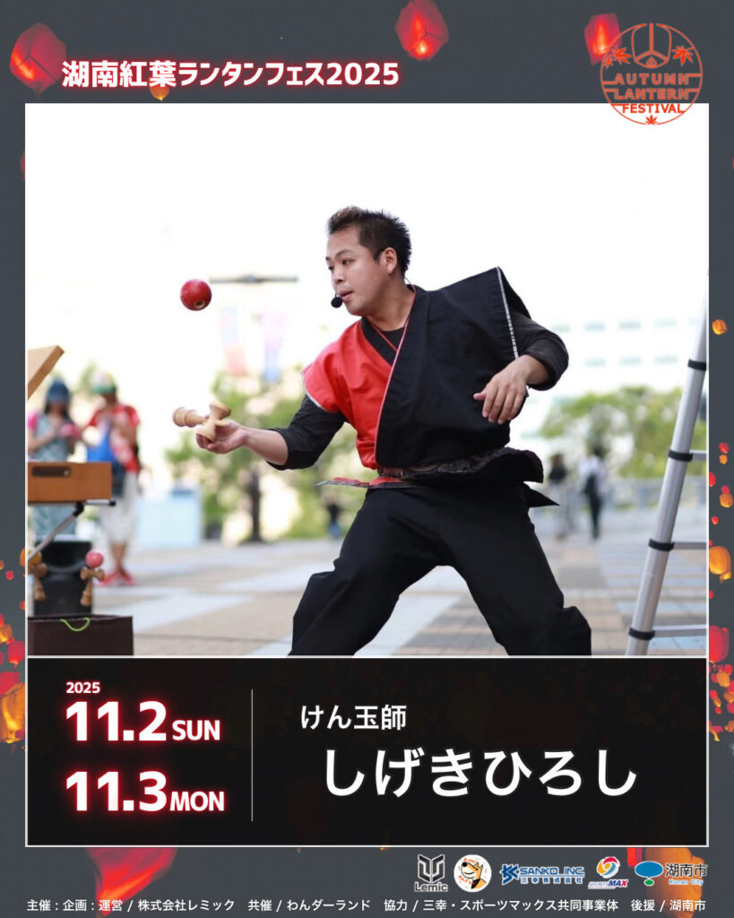 「紅葉ランタンフェス2025」では、大道芸人や露店の出展者様を募集しております。幻想的なランタンの灯りと美しい夜桜が織りなす特別な空間で、多くのお客様とともに心温まるひとときを共有しませんか?